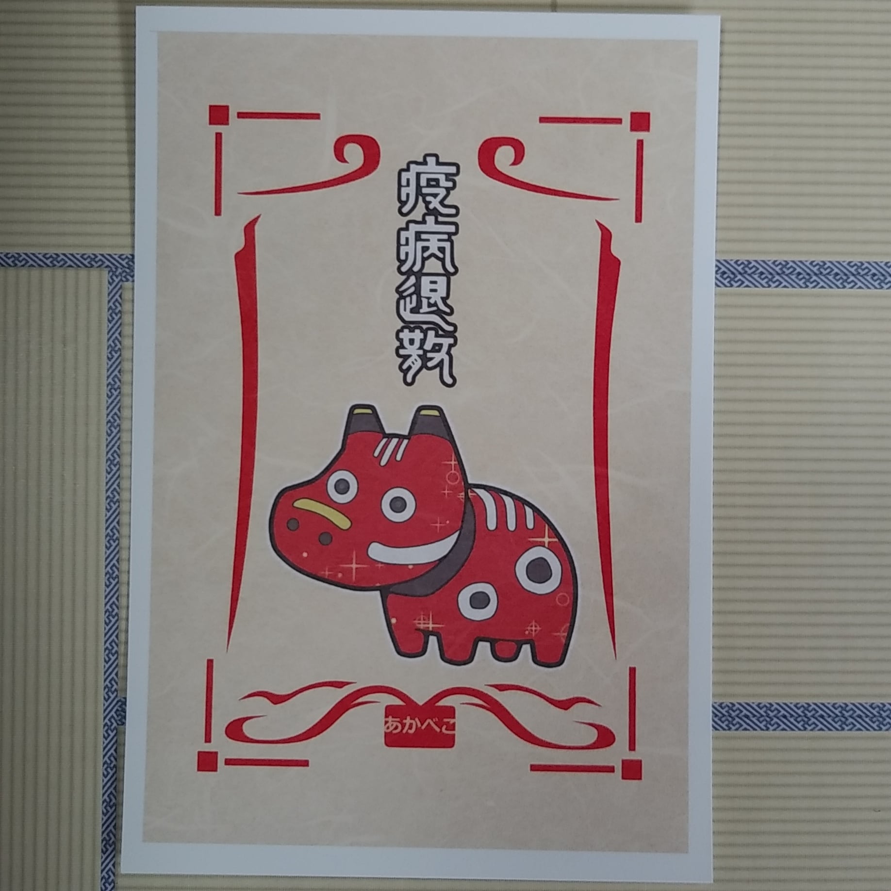 御札風ポストカード【疫病退散 あかべこ】 | 葦 ILLUSTRATION BASE