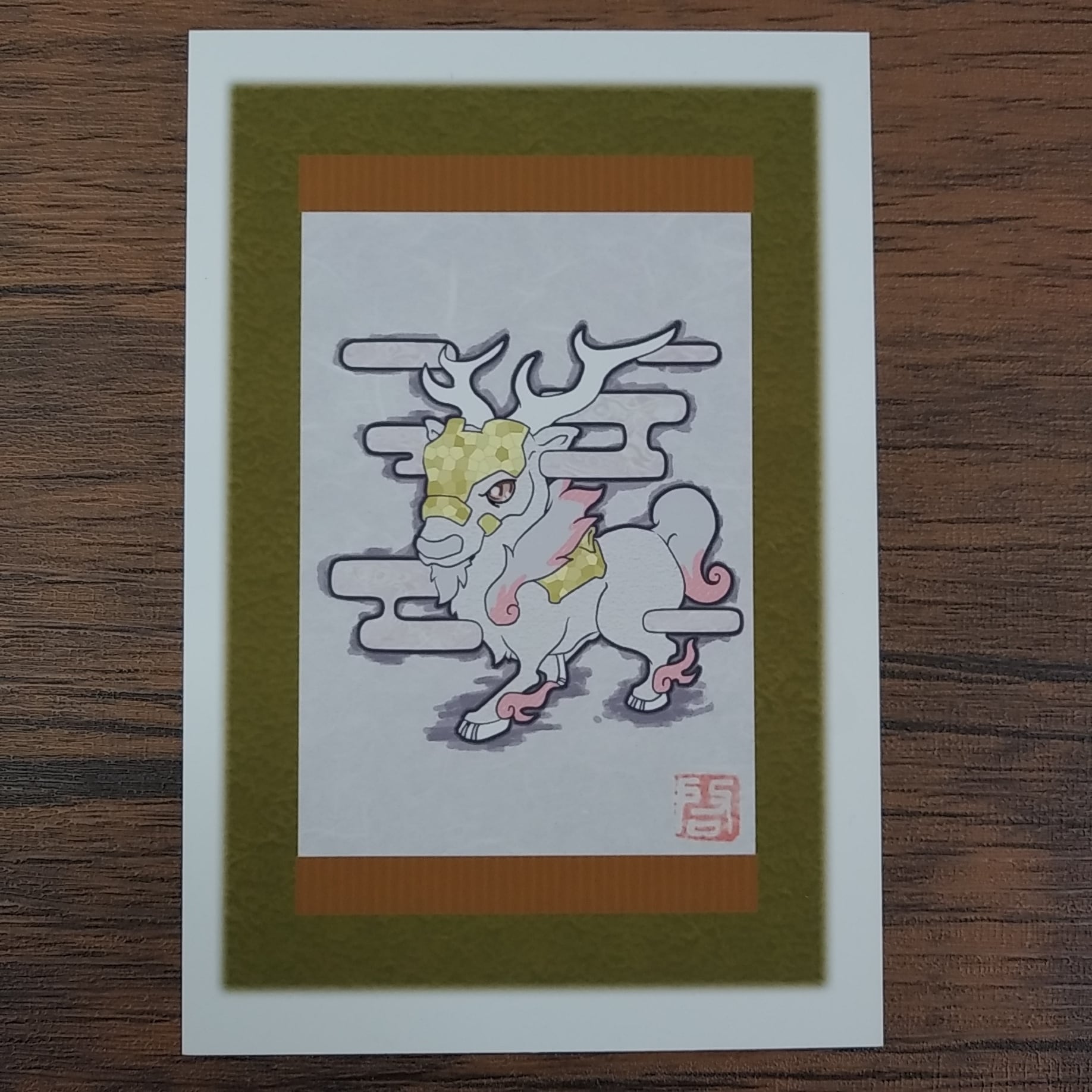 各地の神社仏閣では、御朱印帳とは別に、御眷属の御札なんかもあるらしい(無い所もあります)ので、御札の代わりにこのポストカードを飾れば、悪いものが退散…するかもしれません(笑)