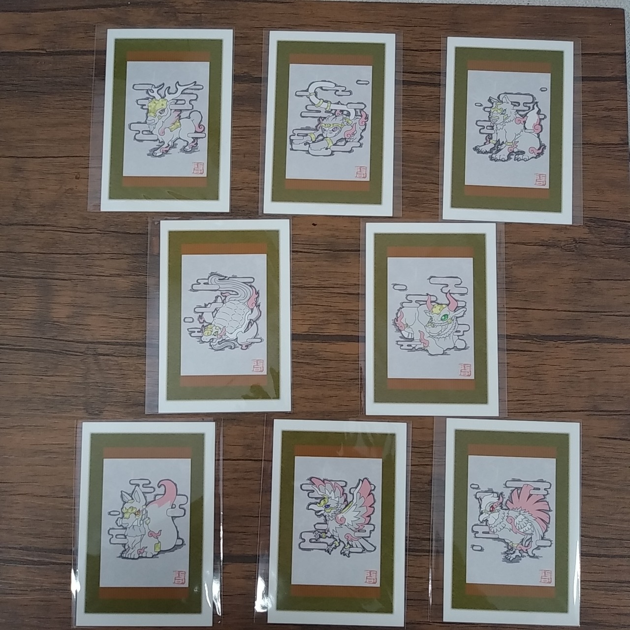 各地の神社仏閣では、御朱印帳とは別に、御眷属の御札なんかもあるらしい(無い所もあります)ので、御札の代わりにこのポストカードを飾れば、悪いものが退散…するかもしれません(笑)